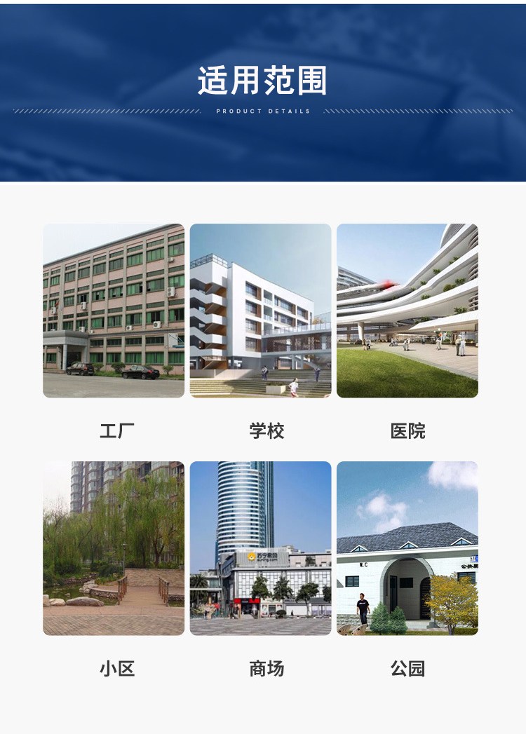 主要适用于工业企业生活区和城市居民生活小区等明勇建筑的生活污水净化处理,广泛用于住宅小区、医院、学校、宾馆等场所。