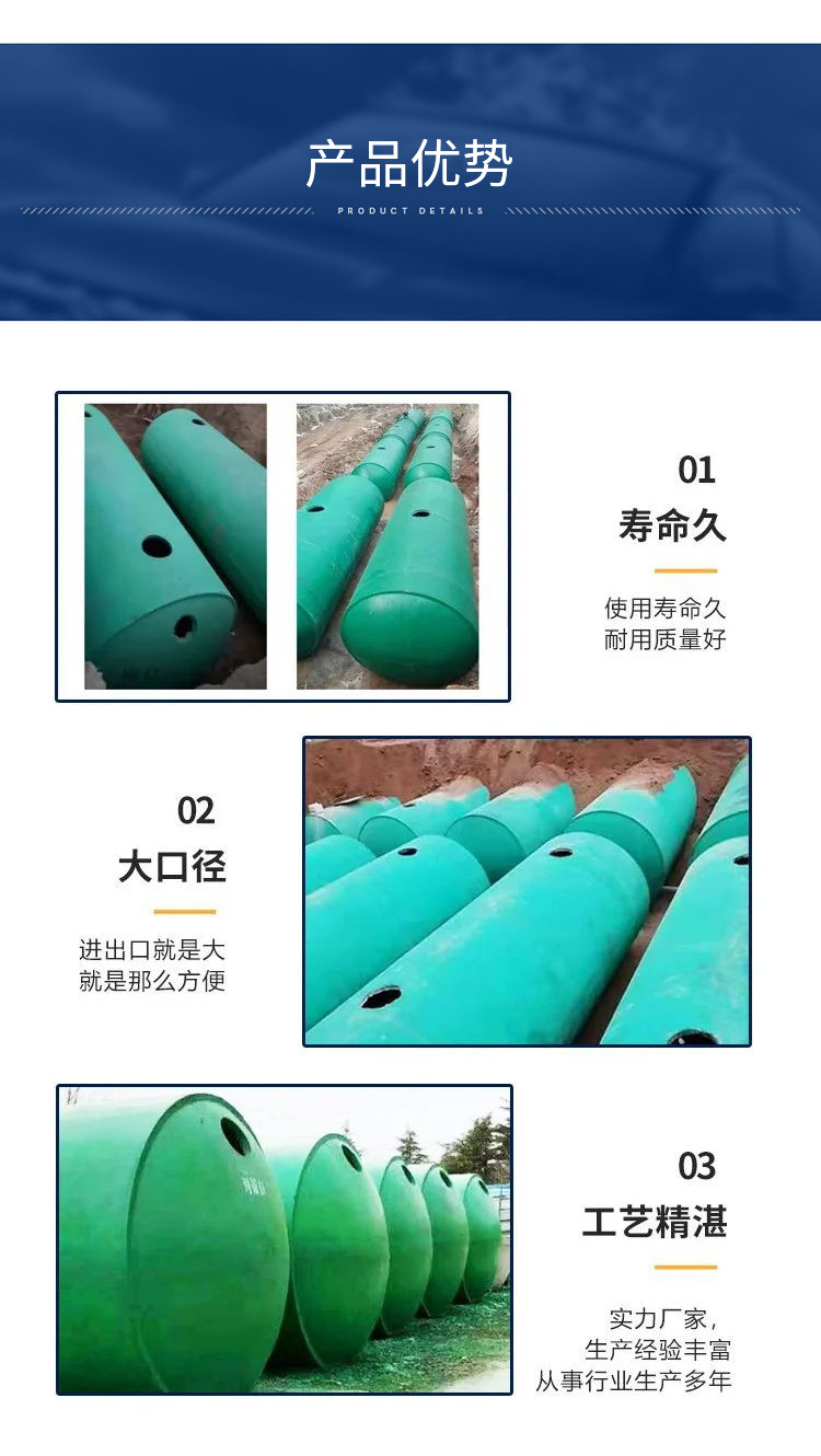 1、处污能力强:是传统化粪池处污能力的4-6倍(是玻璃钢化粪池的2-3倍)